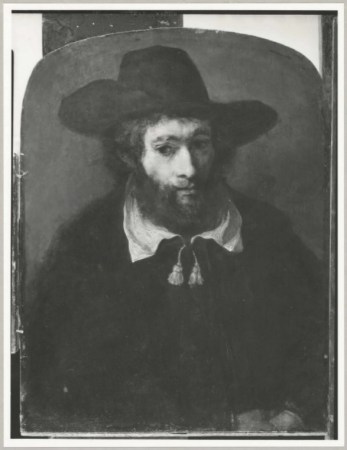 Rembrandt van Rijn, Portrét mladého muže s vousem (s přemalbou z 18. století), cca 1656–1658, olej na desce, 40,4 × 31,3 cm, The Leiden Collection, New York