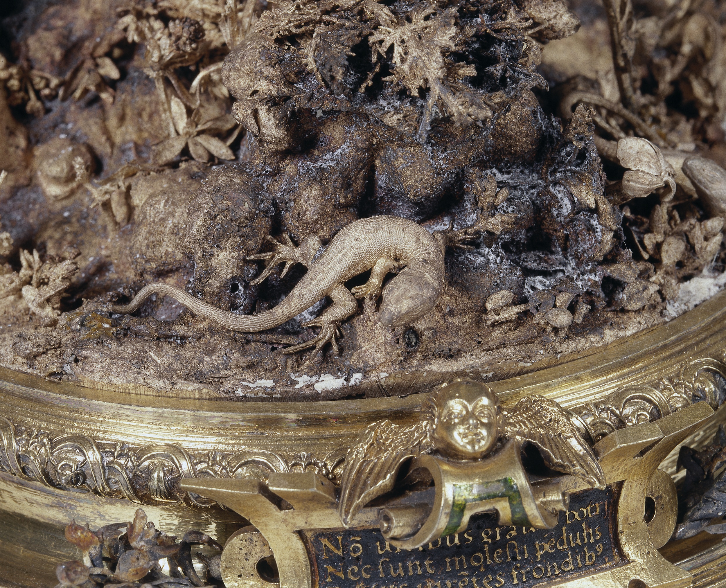 5. Wenzel Jamnitzer, Matka země, 1549, detail ještěrky na podstavci