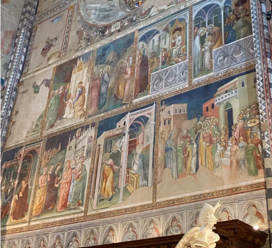 cathdral in Previous Next Published 26/01/2026 at 562 × 512 in Zranitelnost v mramoru | O síle emocí a věrouce ve Zvěstování Francesca Mochiho 6. Presbytář Katedrály Nanebevzetí Panny Marie, Orvieto, cyklus fresek ze života Panny Marie